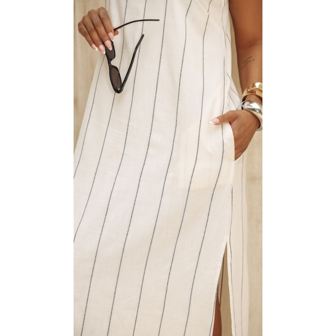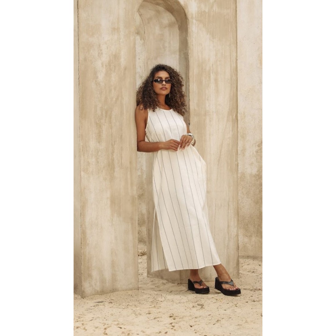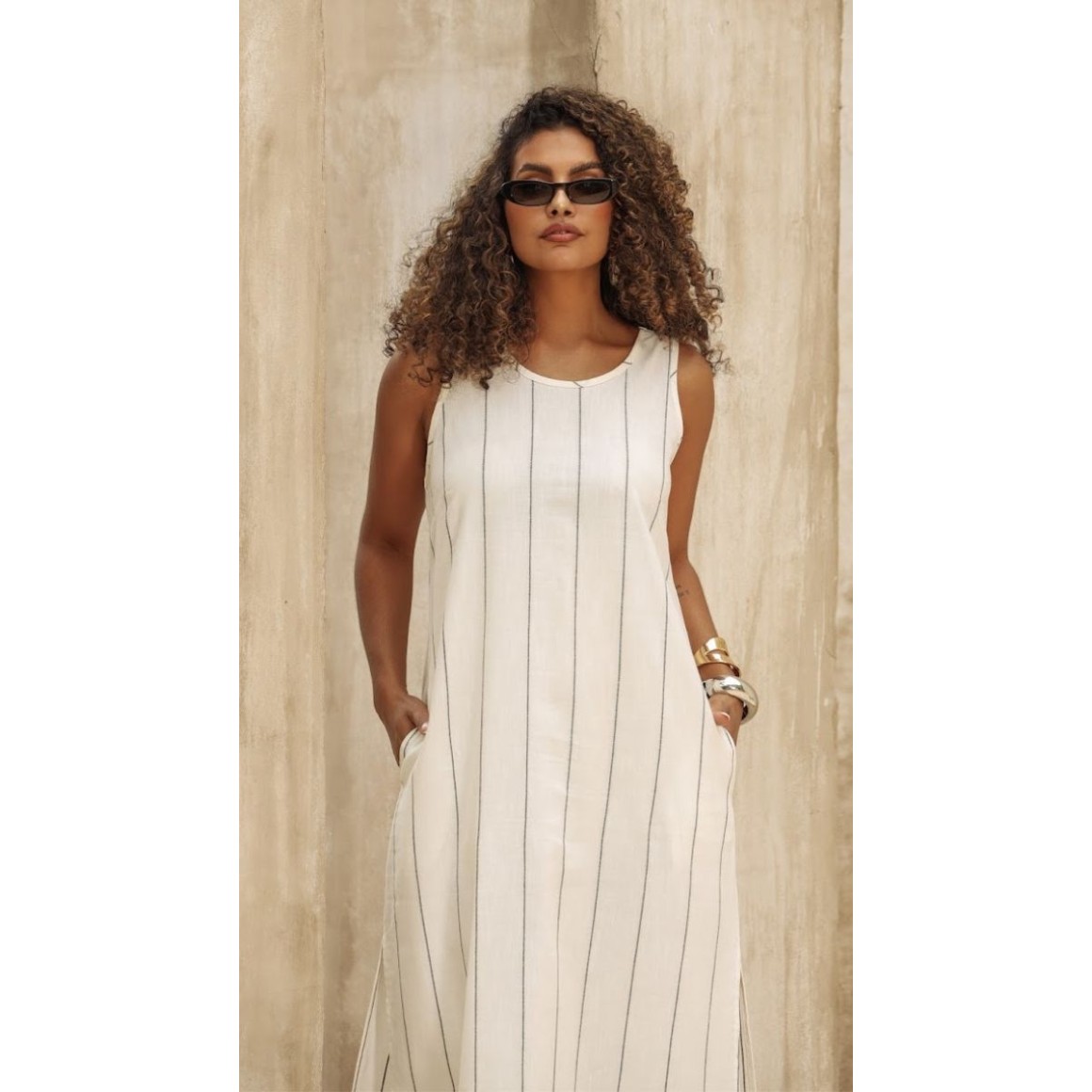 Vestido Longo Regata Listrado com Bolsos Laterais