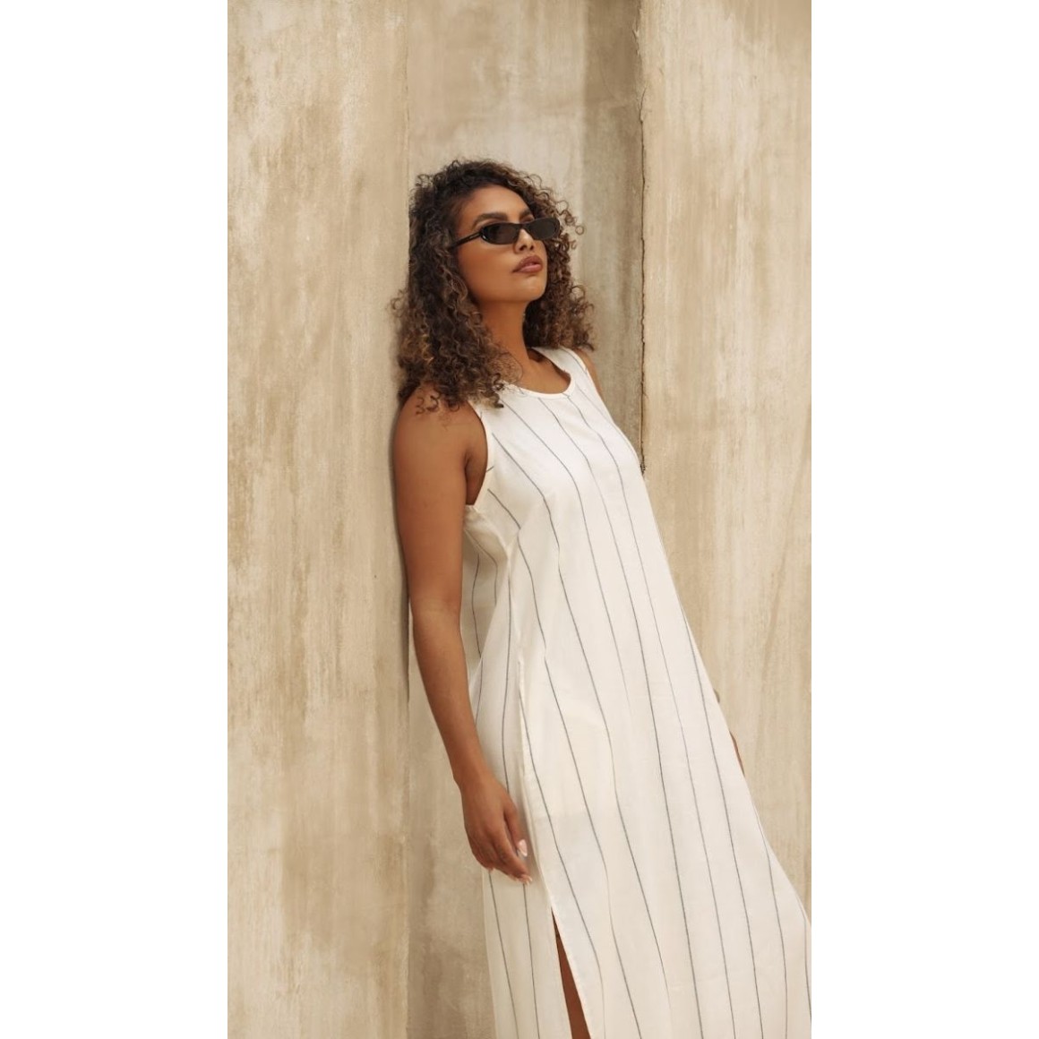 O vestido longo regata listrado é a escolha ideal para quem busca elegância e praticidade no dia a dia. Confeccionado em 62% algodão e 38% viscose, oferece um caimento perfeito, toque macio e frescor — ideal para os dias mais quentes.